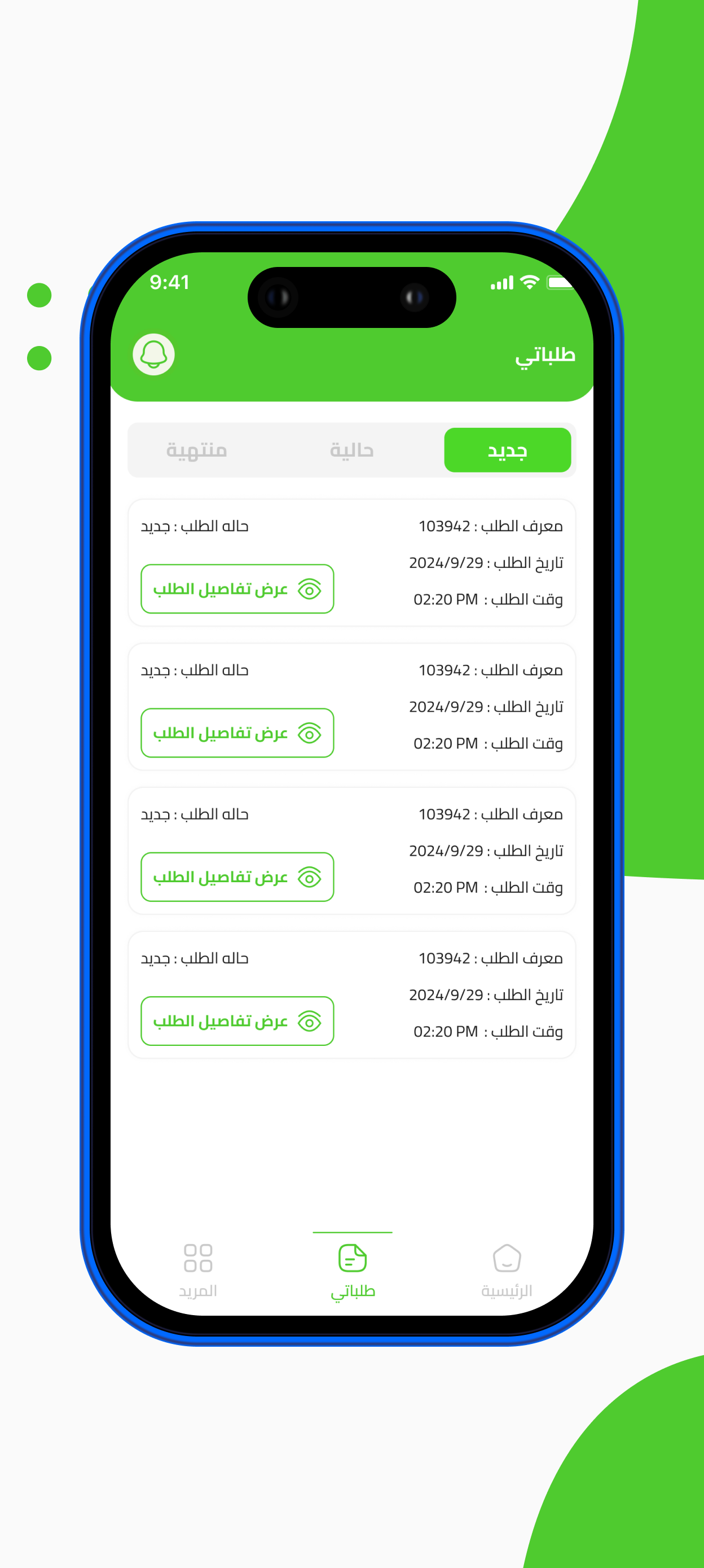 مراجعة حالة الطلب واستقبال الاشعارات